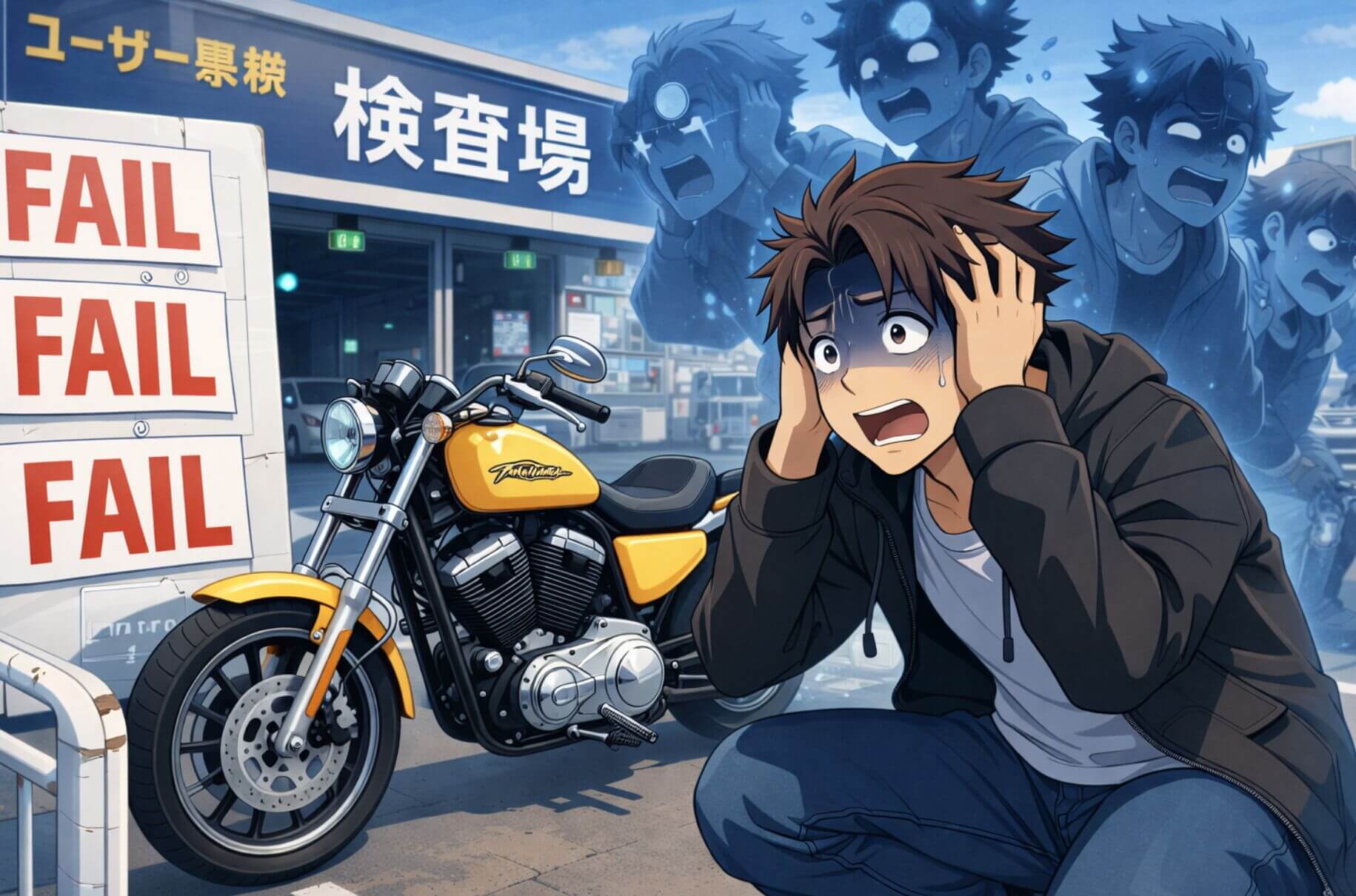 今までこれほどNGを食らったことはないので、自分の検査方法が間違っているのか、立った方が良いのか、バイクは水平なのか、ブレーキ握ってたらダメ?などなど疑心暗鬼の中、テスター屋Bへとんぼ返り。