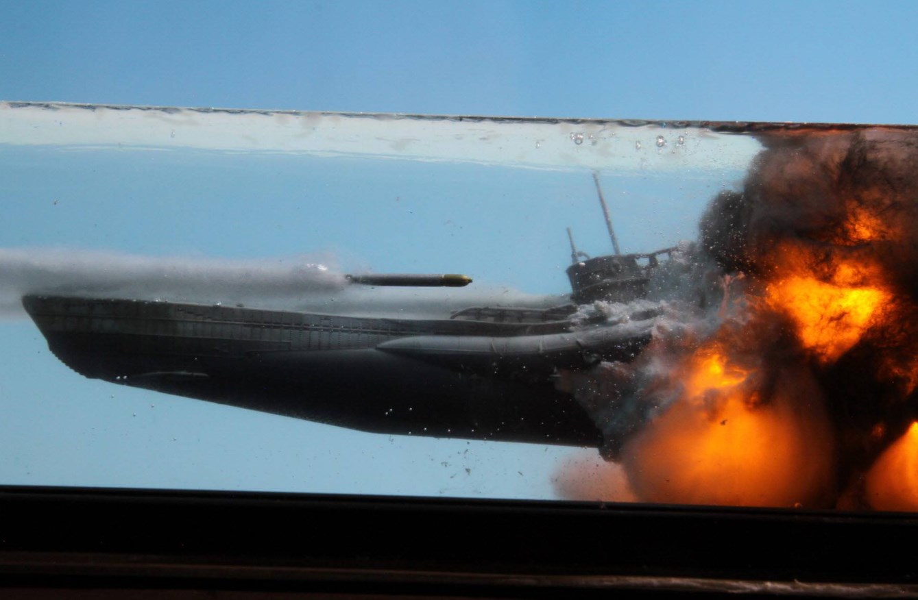 潜航中の潜水艦に対する攻撃は主に爆雷だったはずだし、この映画のもとになった史実でもそうなようだけど