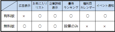 iPhonePLUS内で作成した有料版と無料版の違いの表を作成したので載せておきます。