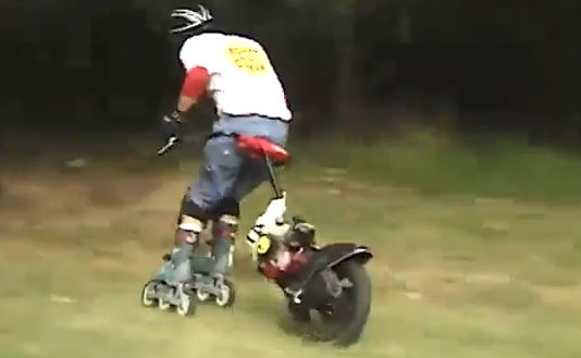 一輪バイクの動力で進む不思議なローラーブレード!!