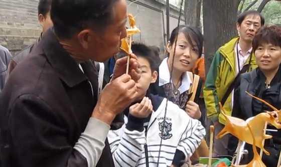 唾液が隠し味!?口で膨らませて作る中国の飴細工…。