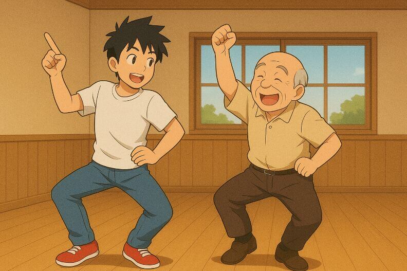 キレキレのパフォーマンス、若者とおじいさんのコマ送り風ダンス