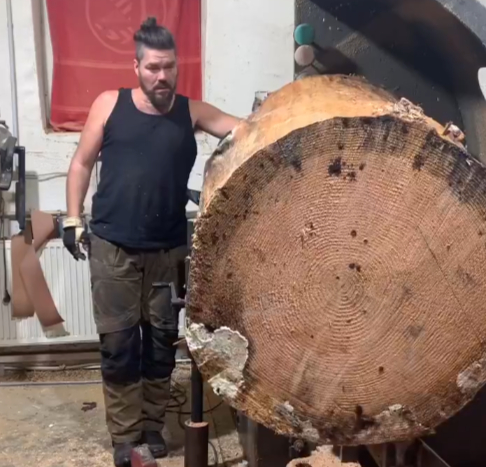 職人技Turning a wooden log into a beautifully textured vessel.