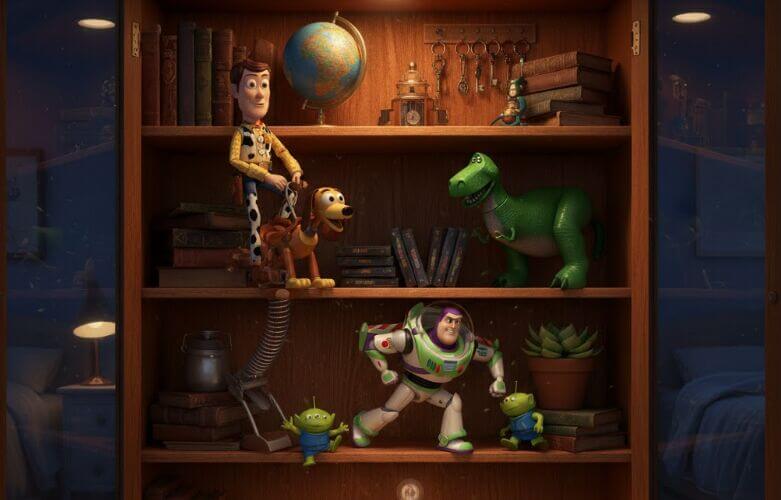 キャビネットの扉が閉まっているときは、映画さながらキャラクターたちが動いていて、扉を開けるとおもちゃに戻る仕掛け。