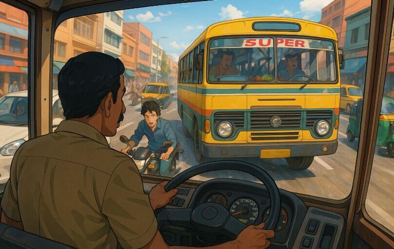 【レベチ】命がいくつあっても足りない…“あおり運転超え”のインドのバス運転手視点