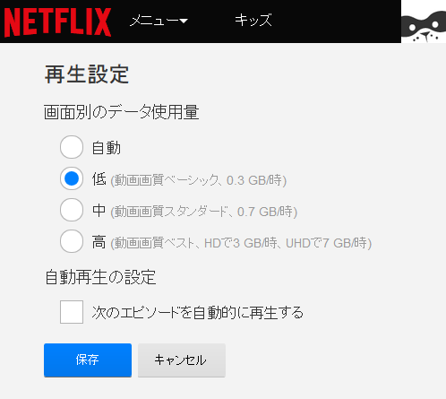 外出先で見ることが多い人は忘れないように設定して、通信制限を喰らいにくくしましょう。