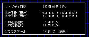 平均受信速度が約80KB/sなので、1分で4.8MB、1時間で288MB。だいたい合ってますね。