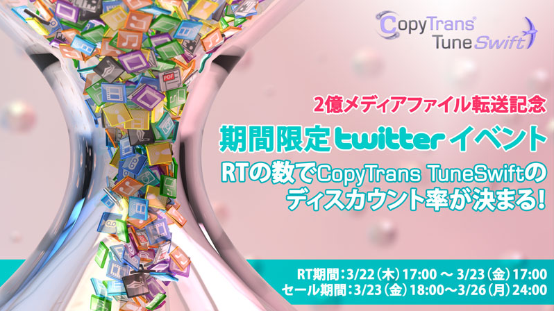CopyTrans TuneSwiftのディスカウント率を皆さんのリツイート(Retweet)数で決定いたします。