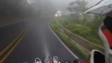 コスタリカ・ザルセロの雨降る山道を走行中のバイクのヘルメットカム映像。短いですが「こいつぁやばかったぜ」というような映像...