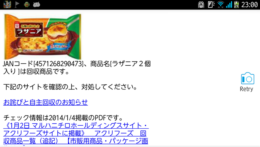 [ss url=”http://sankei.jp.msn.com/affairs/news/140108/crm14010822580024-n1.htm” width=”160″ class=”alignleft” title=”【冷凍食品に農薬】回収率は28%止まり 公表遅れが影響 – MSN産経ニュース” caption=”” hatebu=1 tweets=1 likes=1 rel=”nofollow” alt=””]