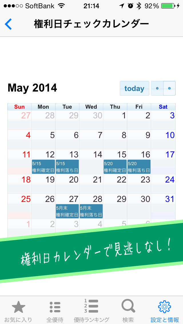 2.優待の権利確定日・権利落ち日を表示する「権利日チェックカレンダー」