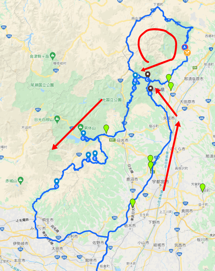 それならば、極上の温泉、峠ステッカーを!と言うことで、那須~もみじライン~日光+草木湖あたりでプランを立てた。